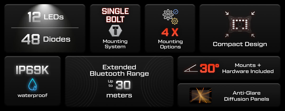 - Durable Construction: Featuring an IP69K waterproof rating and a virtually indestructible polycarbonate LEXAN lens, these rock lights are built to withstand harsh environments and can be mounted on any surface, including boats, caravans, heavy machinery, and 4WDs.