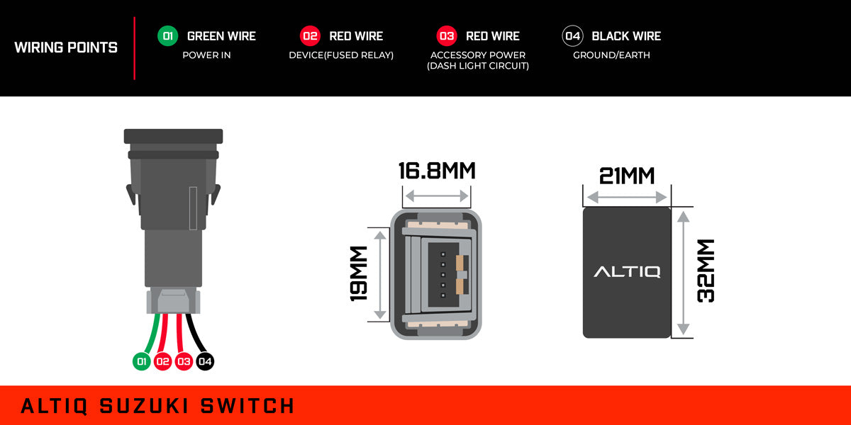 Whether you’re navigating the city streets or conquering off-road terrain, the ALTIQ™ Suzuki Jimny Push Button Switch offers the quality, durability, and style that every adventurer deserves.